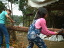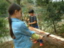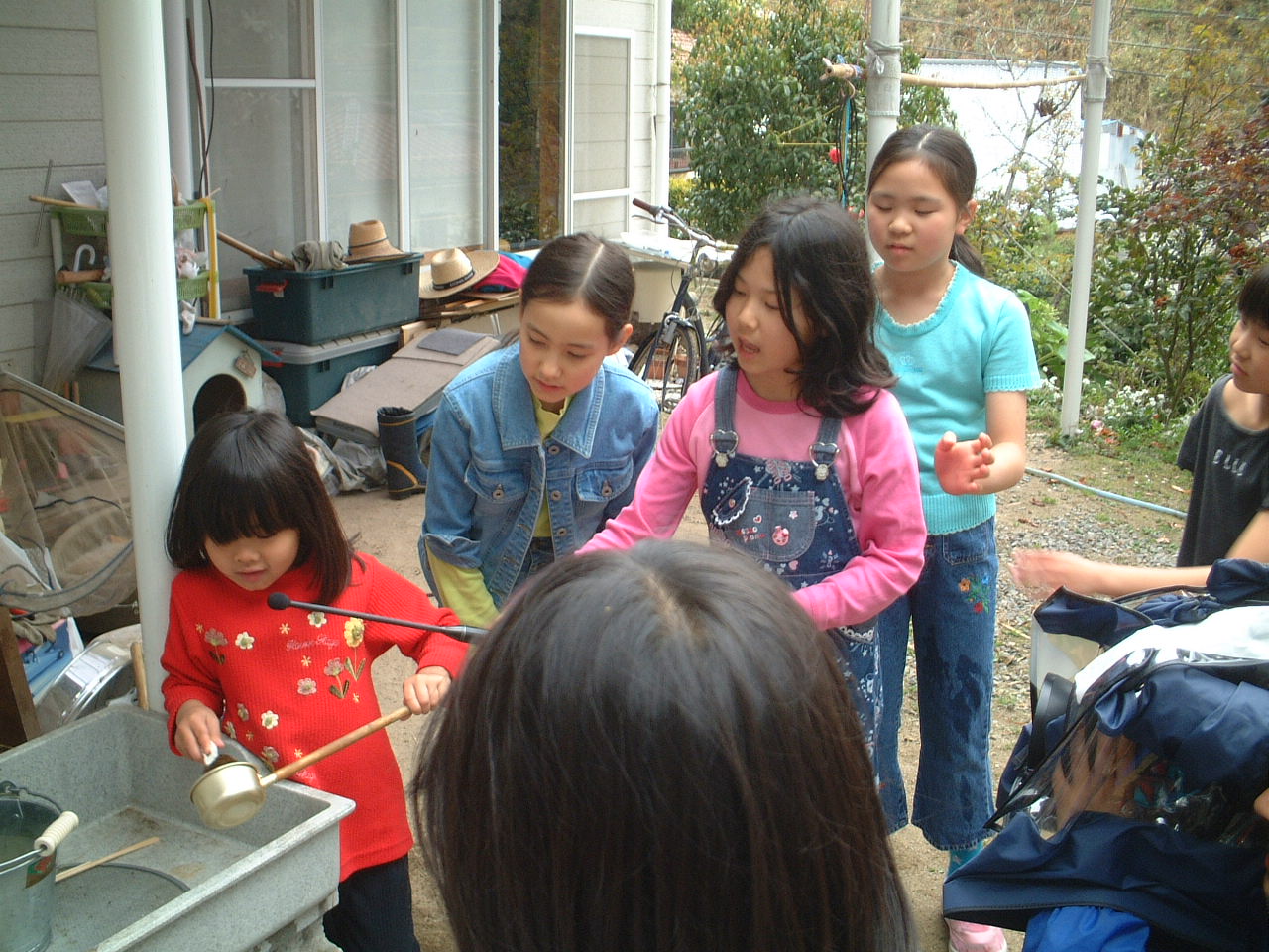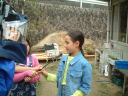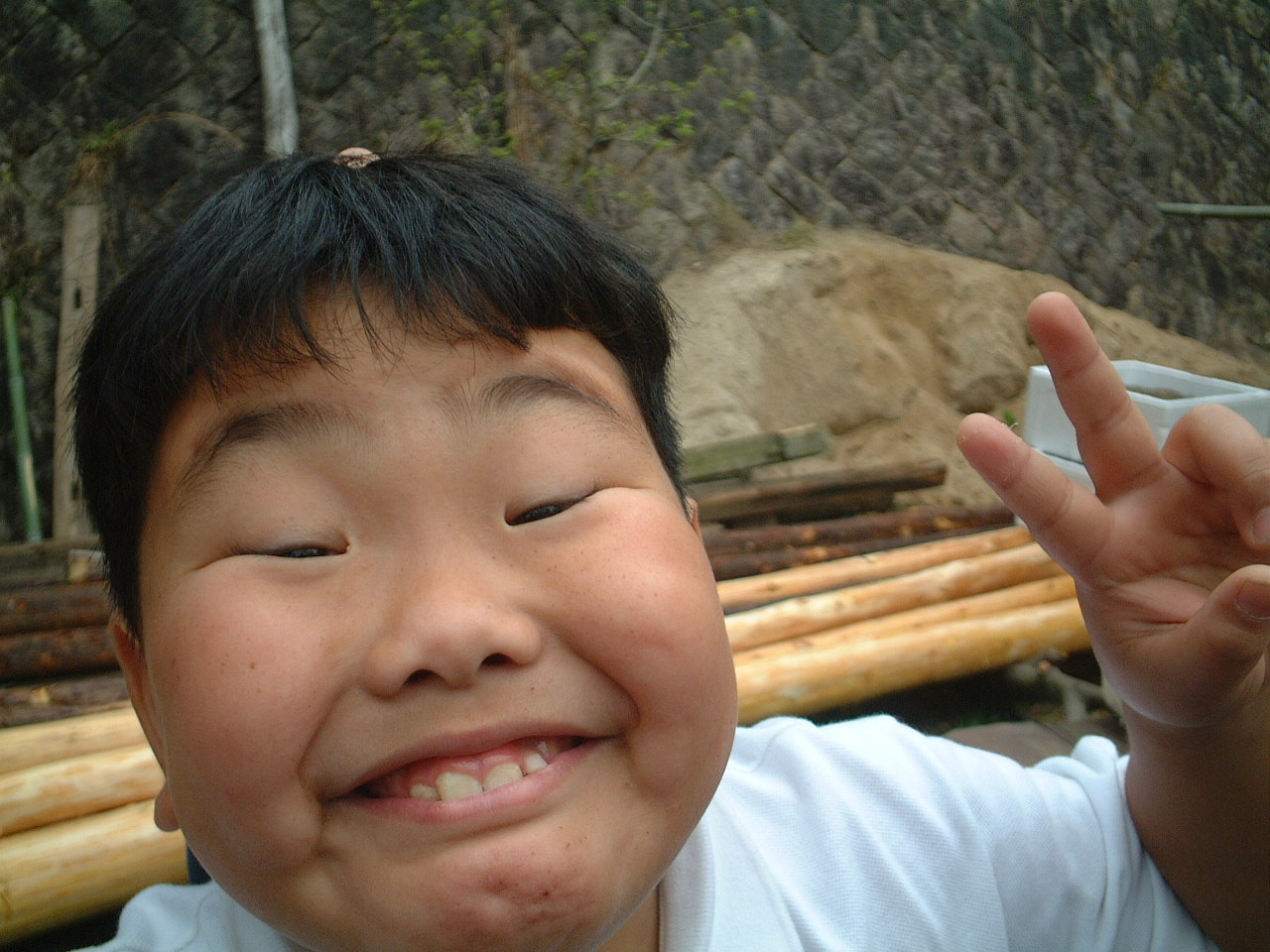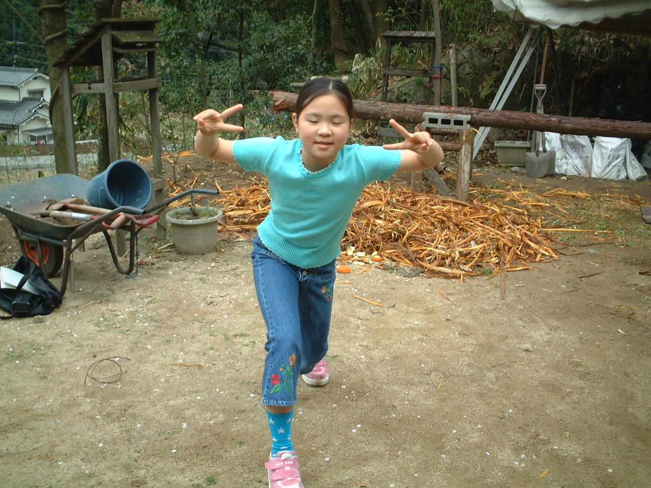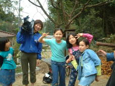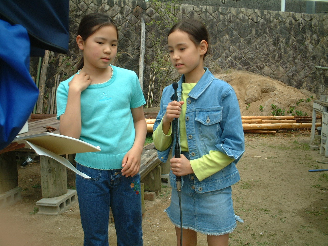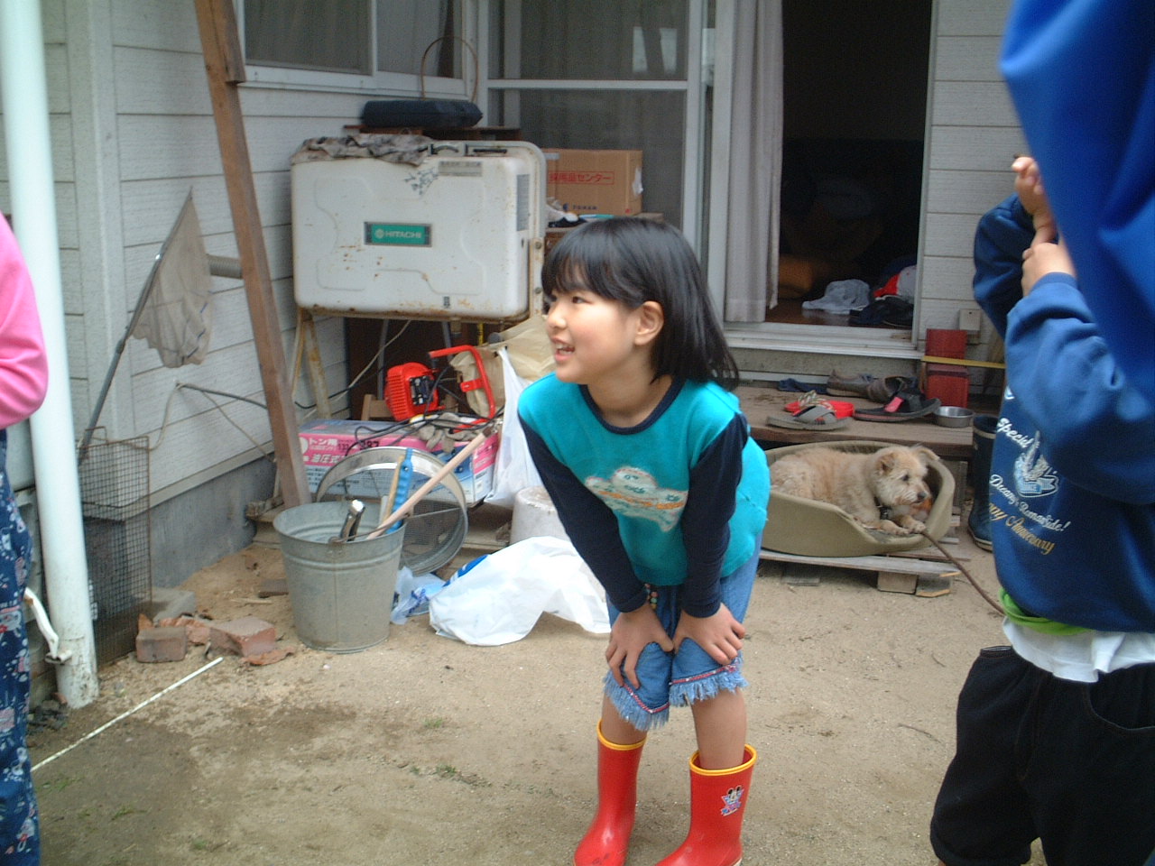 4月9日(月)午前 HBS西村さんから取材に行くと電話 12時半一人でHBSの車を運転して西村さん登場 重いカメラ 重い録音装置を一人で担いで取材 川に入ってカメラを回すときは長靴をお貸ししようとしたけど 平気です と 靴下を脱いで素足に靴をはき じゃぶじゃぶと川を歩いて カメラをまわしていた 子どもたちもそんな西村京子おねえさんにすぐなついて 下のようなポーズ